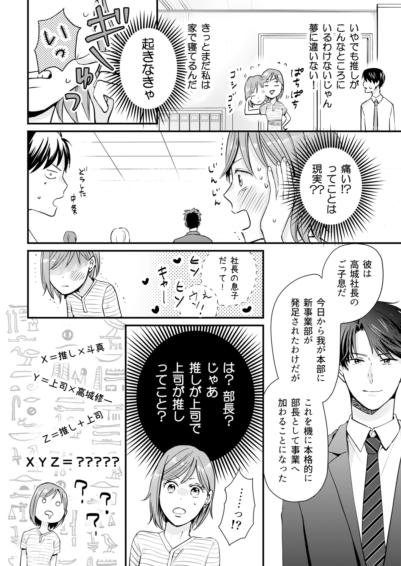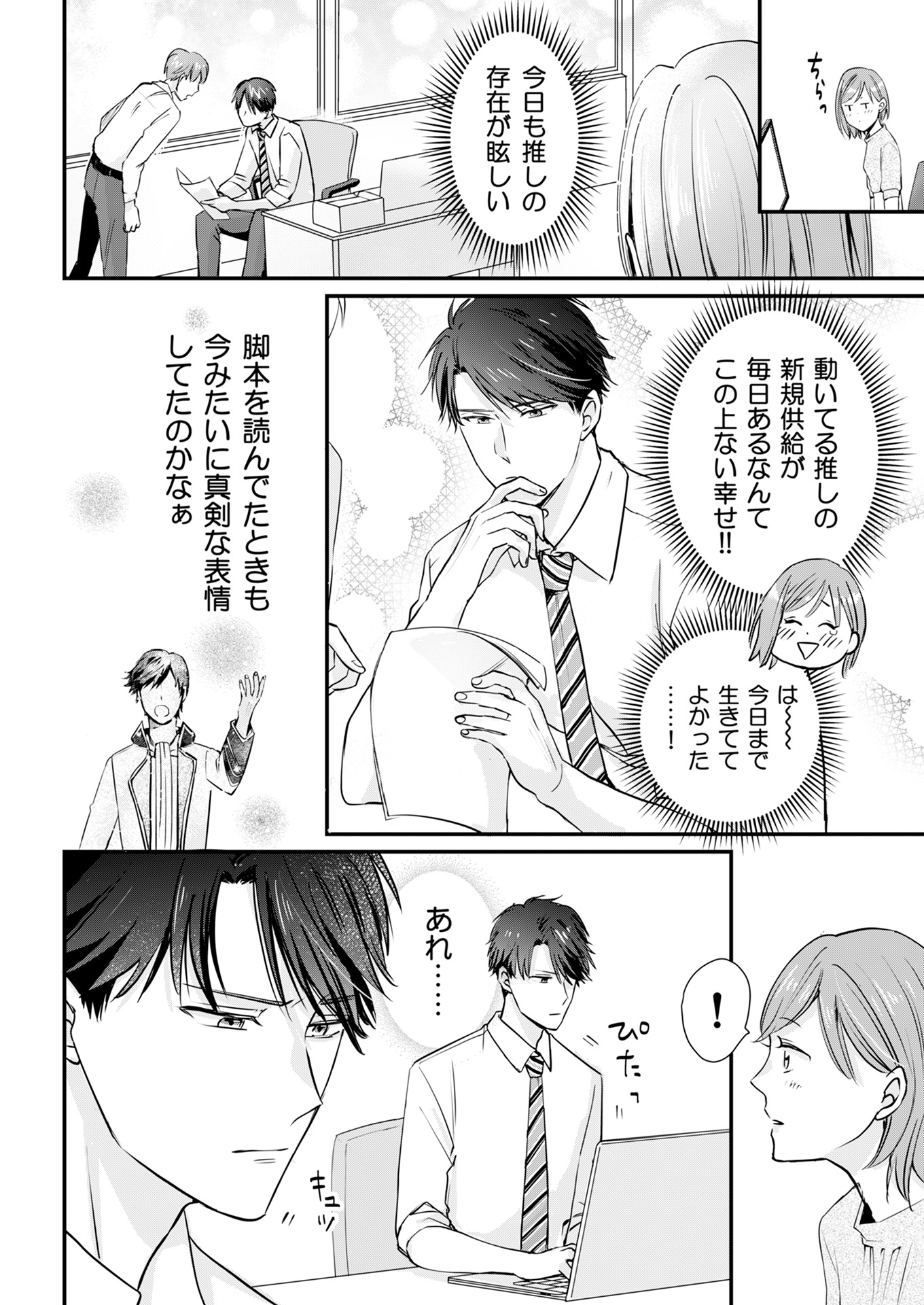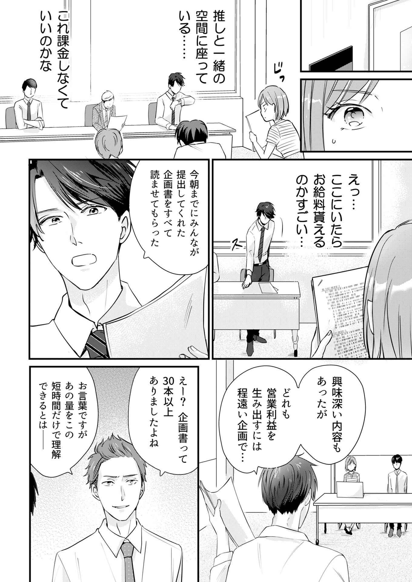 “ 推しが社⻑ ”という状況に嬉しい反⾯、胸キュンしすぎて倒れそうになる愛⾐だったが、それ以前に仕事に⽀障が出ないよう、⾃分がファンだとバレないよう必死…。